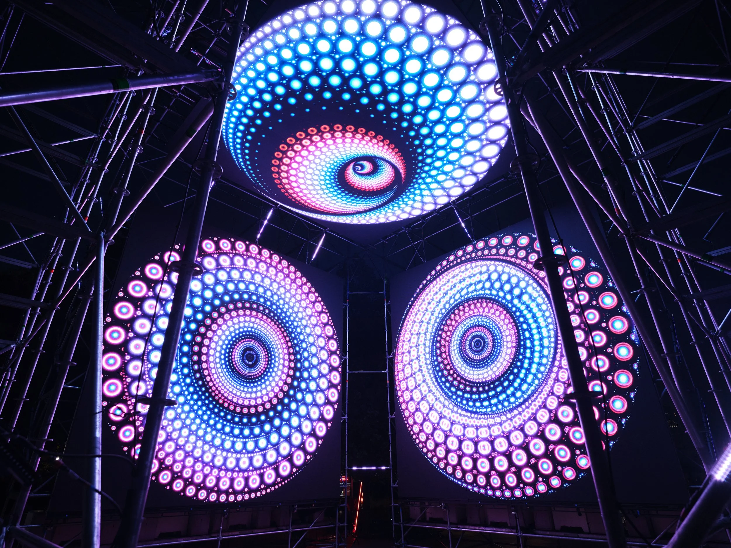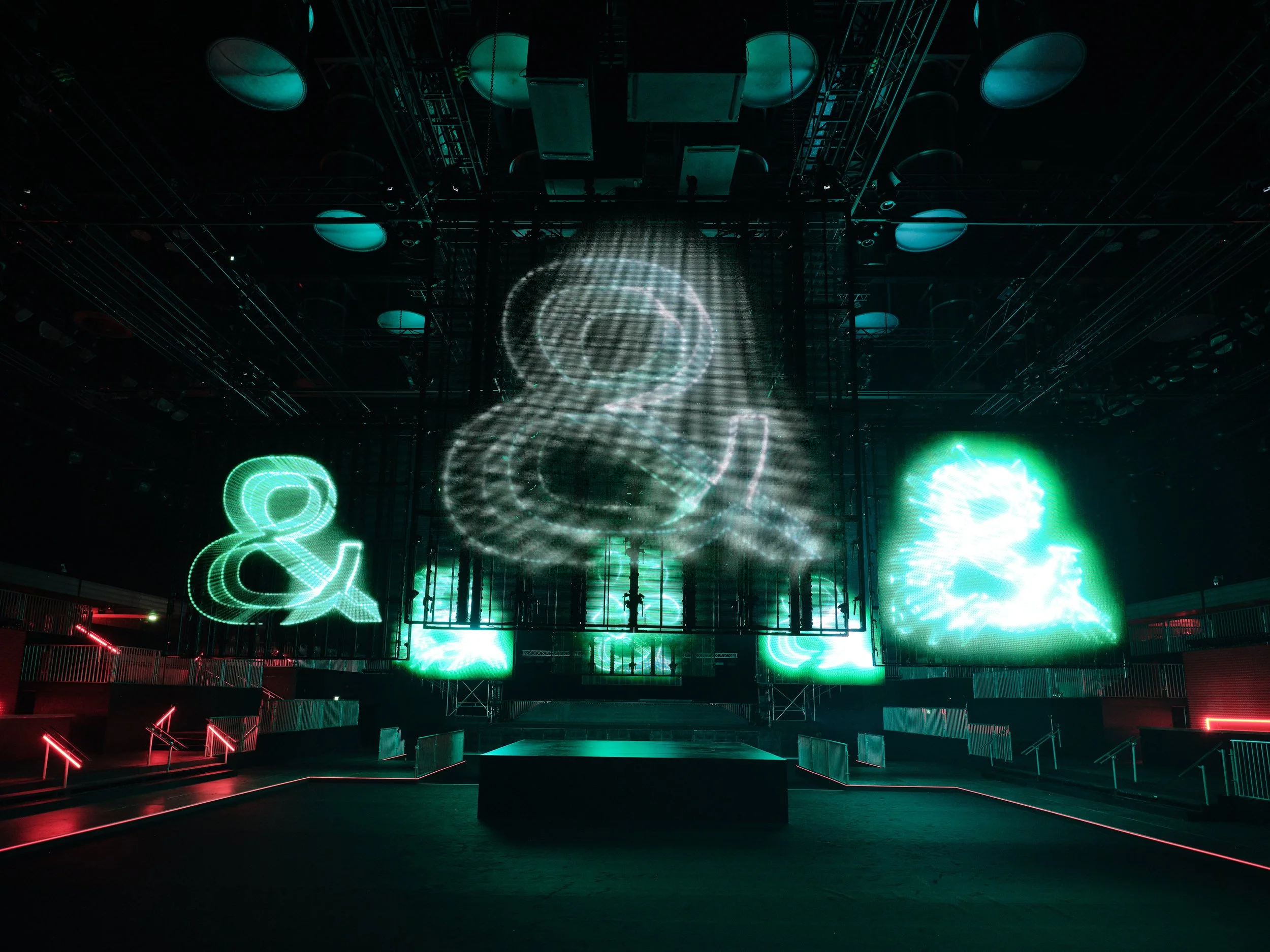 The production relied on meticulous timecoded programming via disguise media servers, ensuring visuals, lights and audio were perfectly synchronized. The one exception was Jamie xx’s DJ set, where the LED grid lowered to create an intimate atmosphere, with freeform, live visuals.
