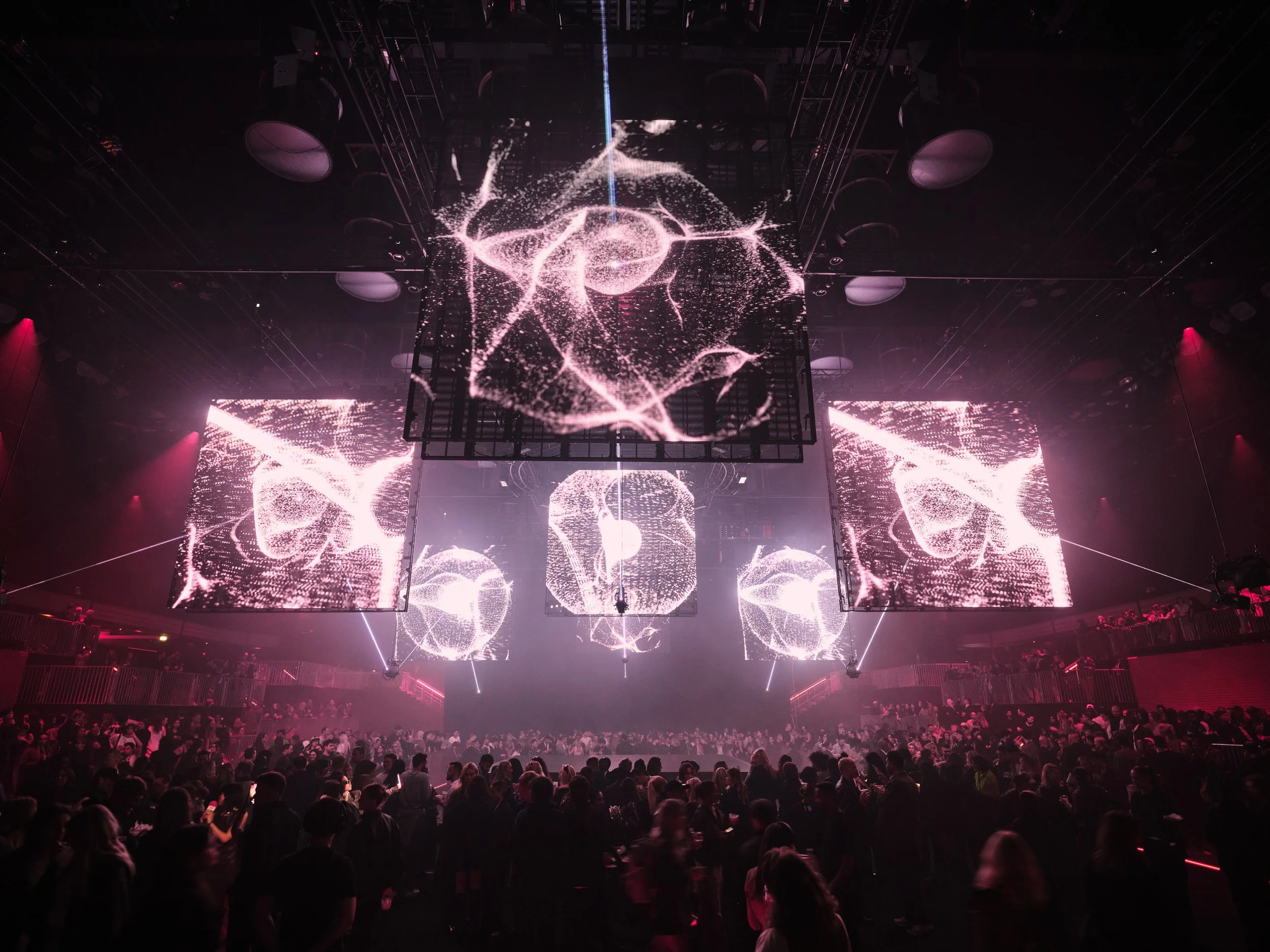 Custom rigging solutions, including Kinesys motors, allowed the setup to evolve dynamically throughout the evening—from the large-scale installation to Charli XCX’s concert and the club segment. This automation enabled real-time transformations, elevating the energy with each phase.