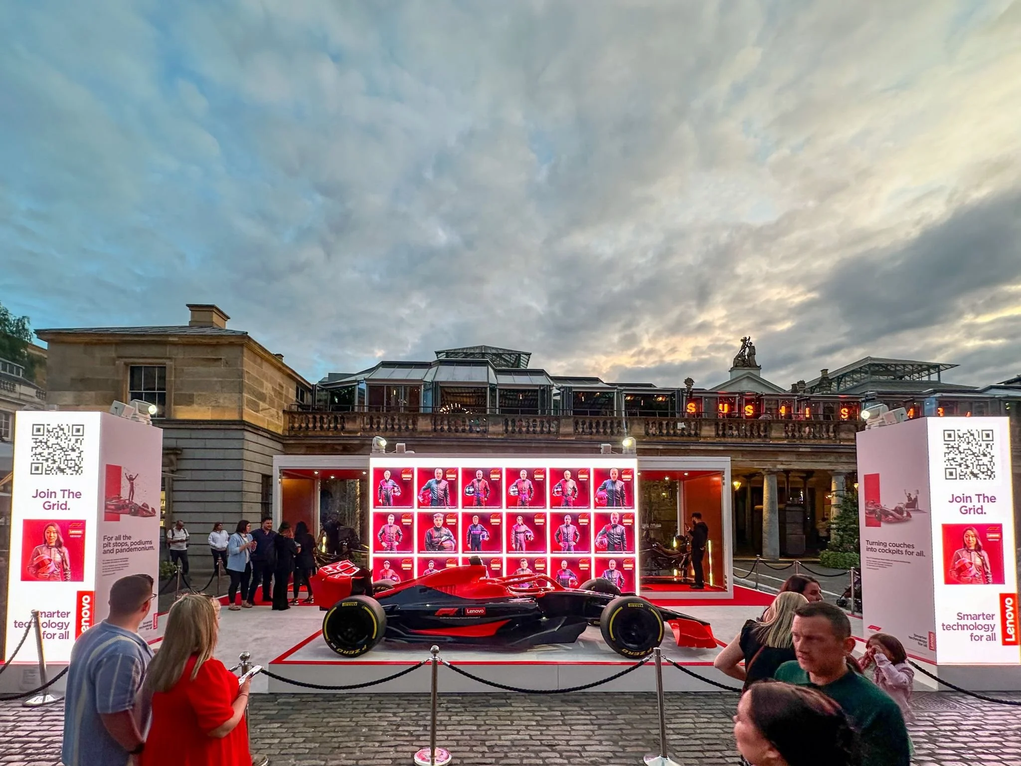 Lenovo partnered with Formula 1 to create an exciting racing simulator experience in Covent Garden, featuring a Lenovo-branded F1 show car as the centrepiece.